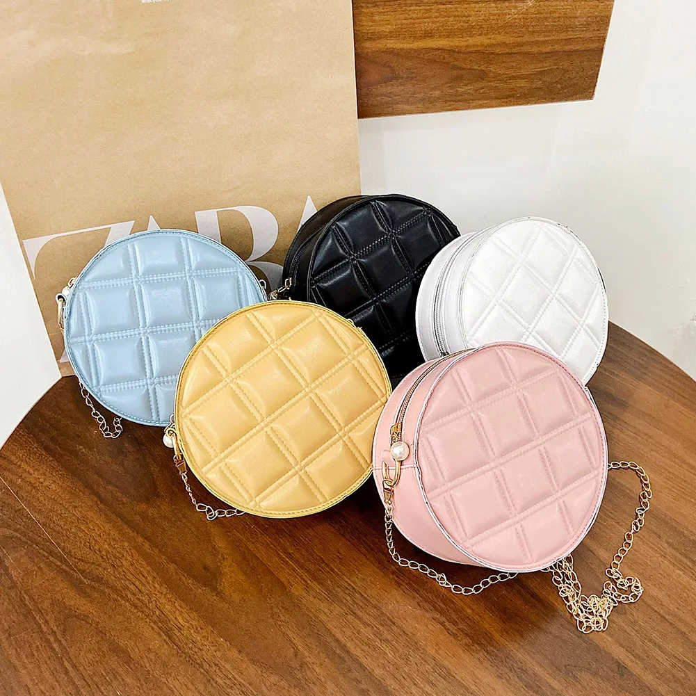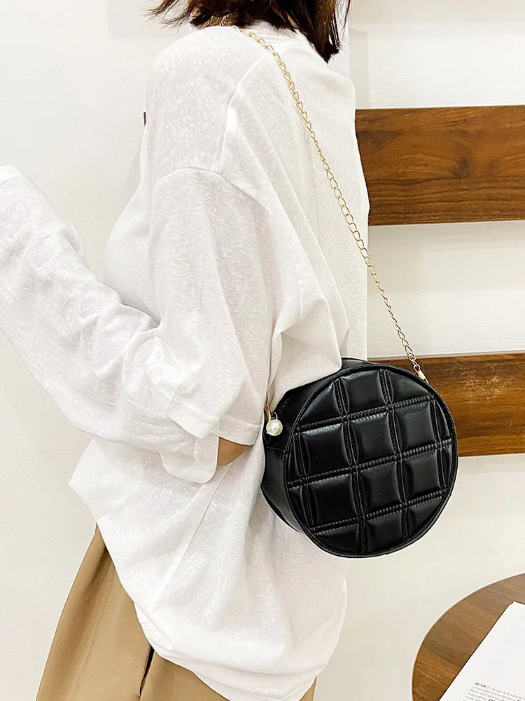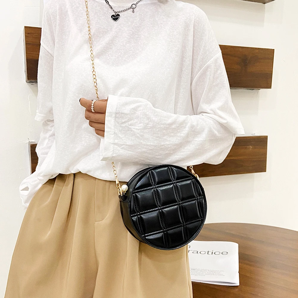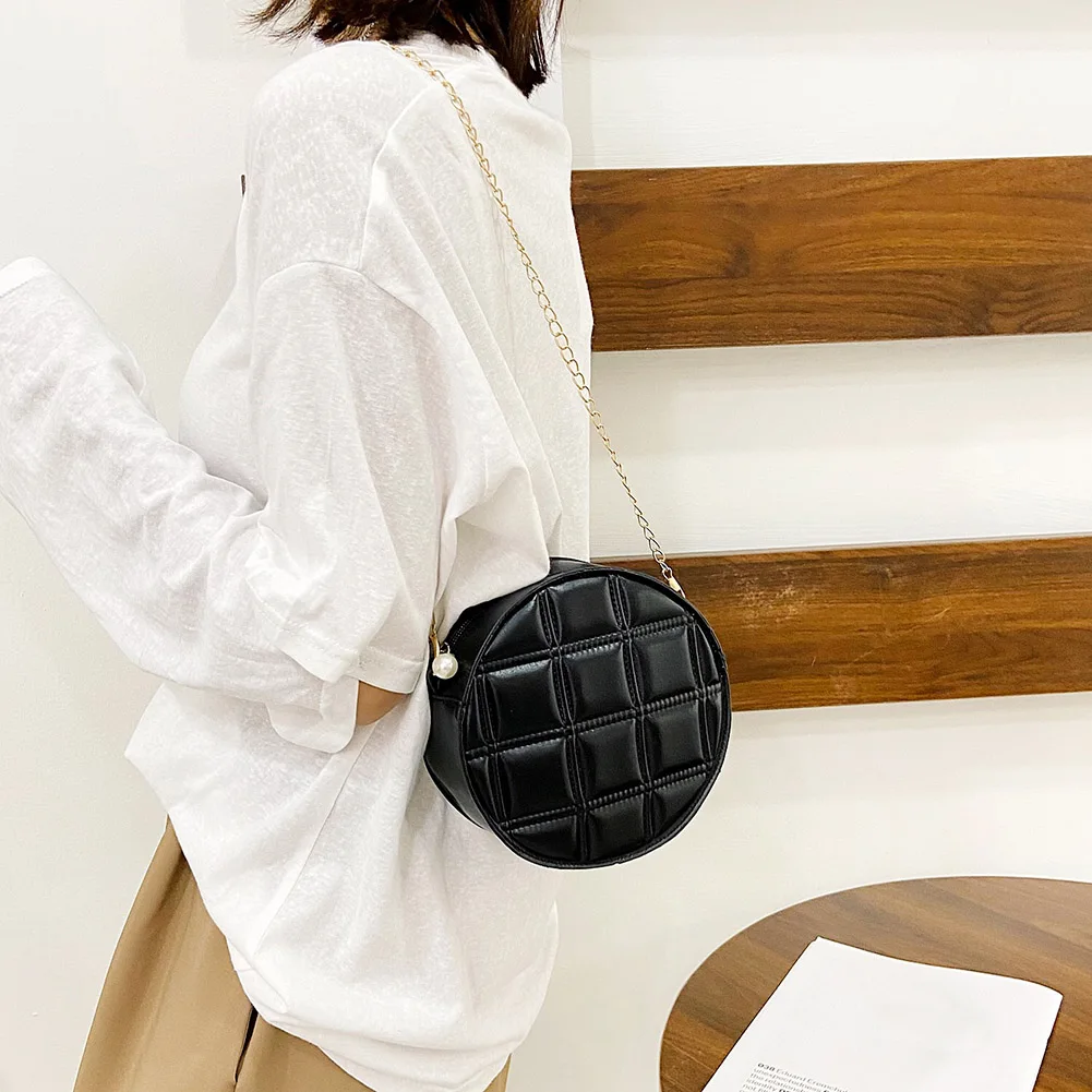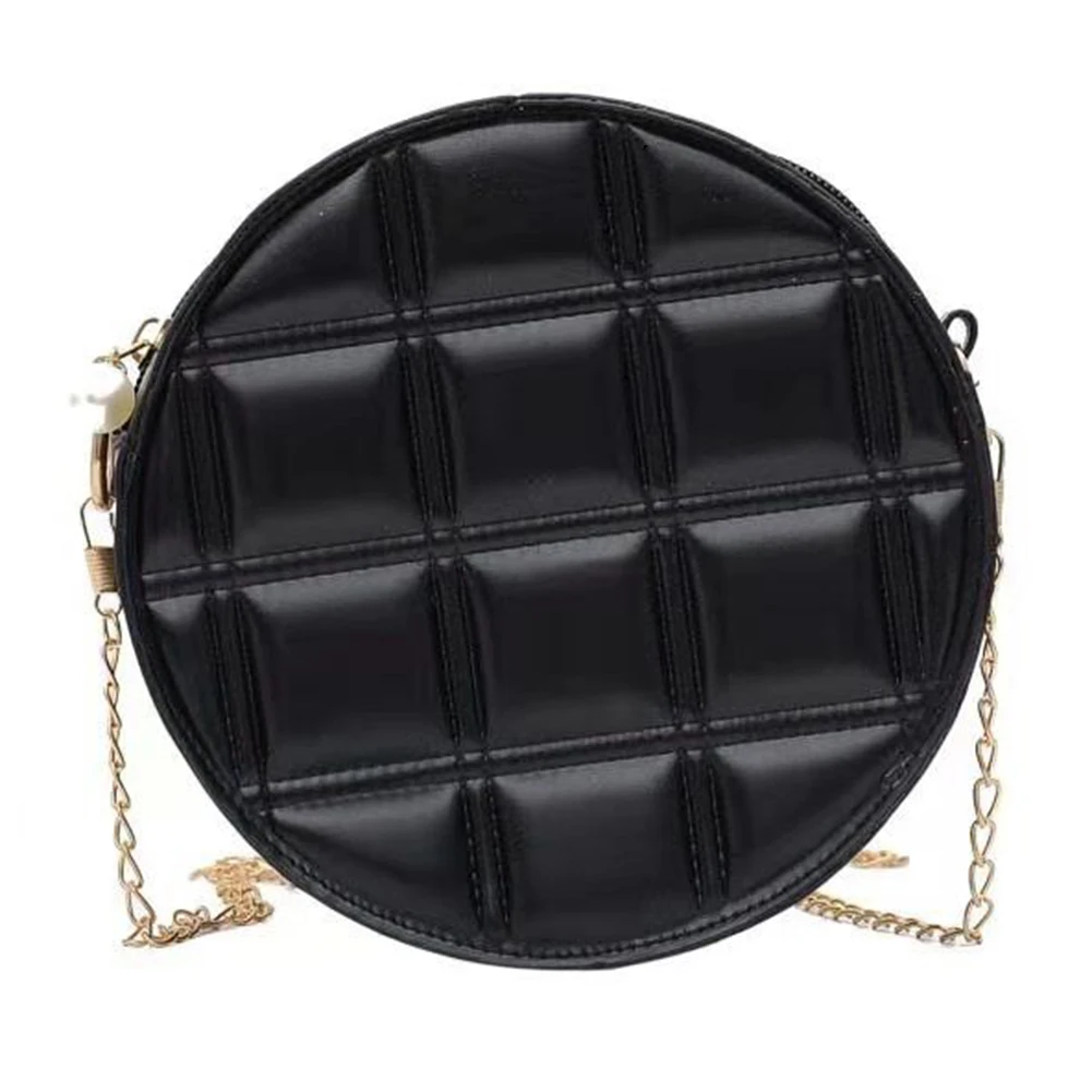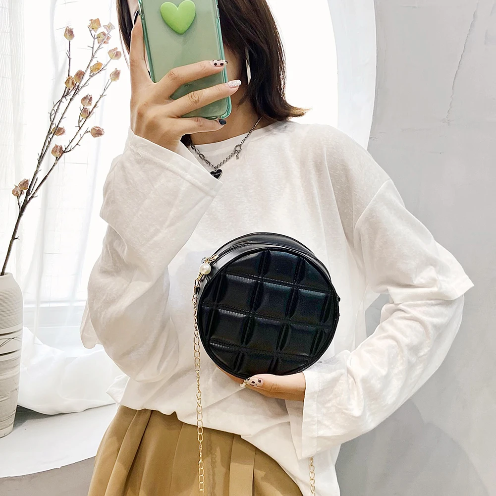 Moda feminina xadrez de couro do plutônio forma redonda corrente ombro crossbody messenger bag casual senhoras mini bolsa bolsas