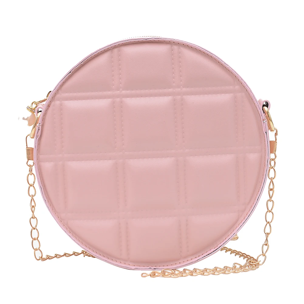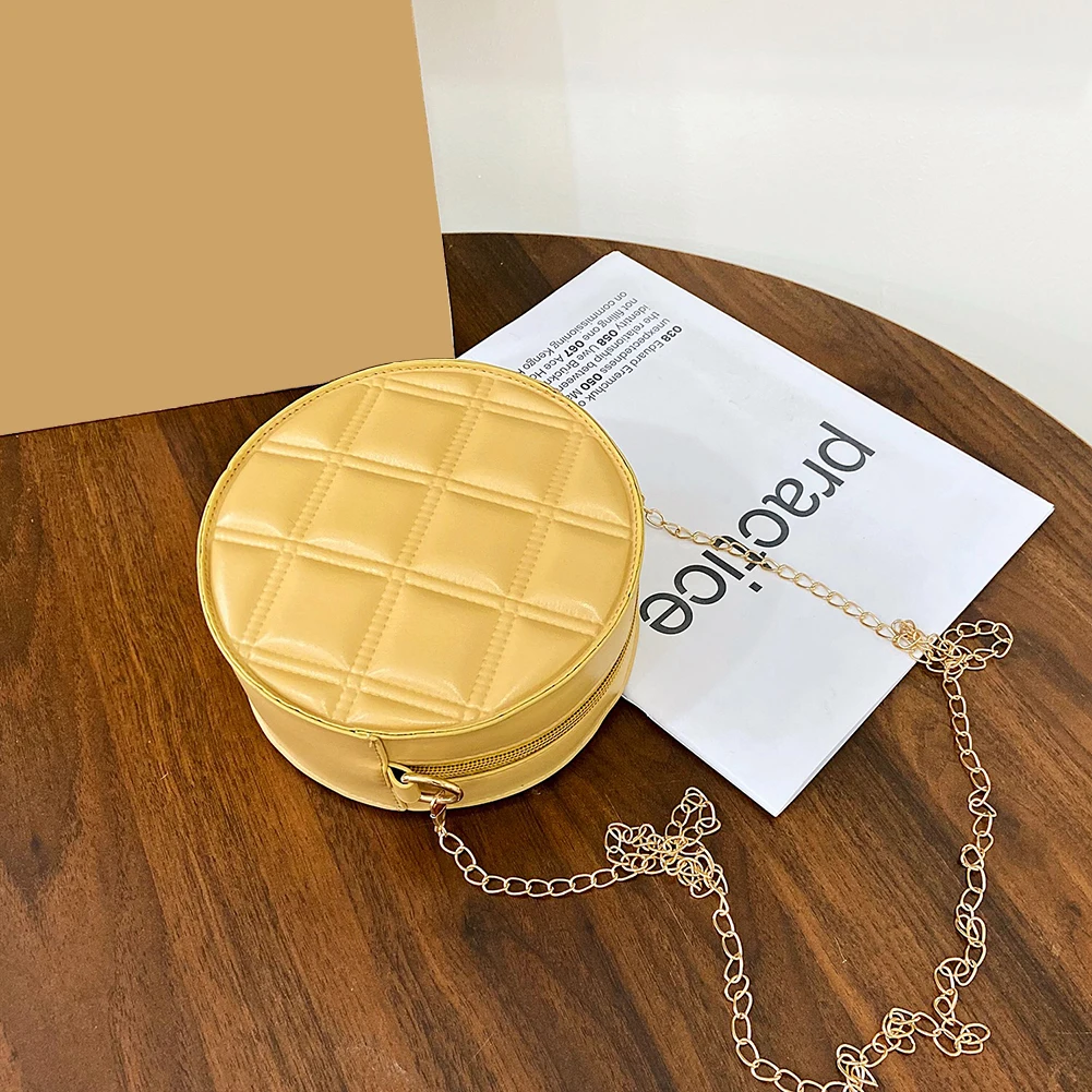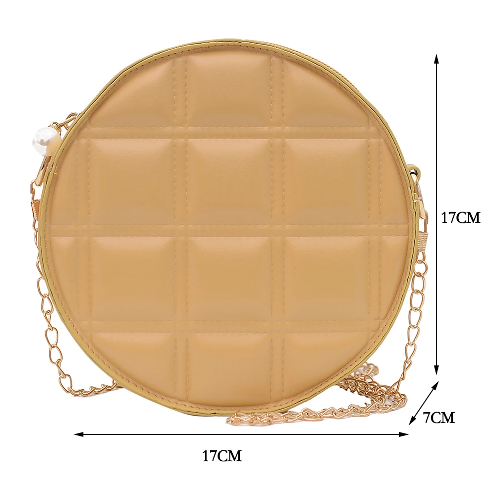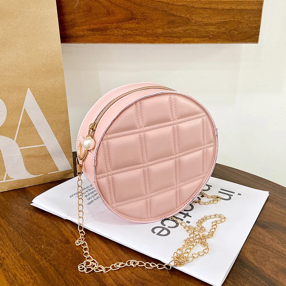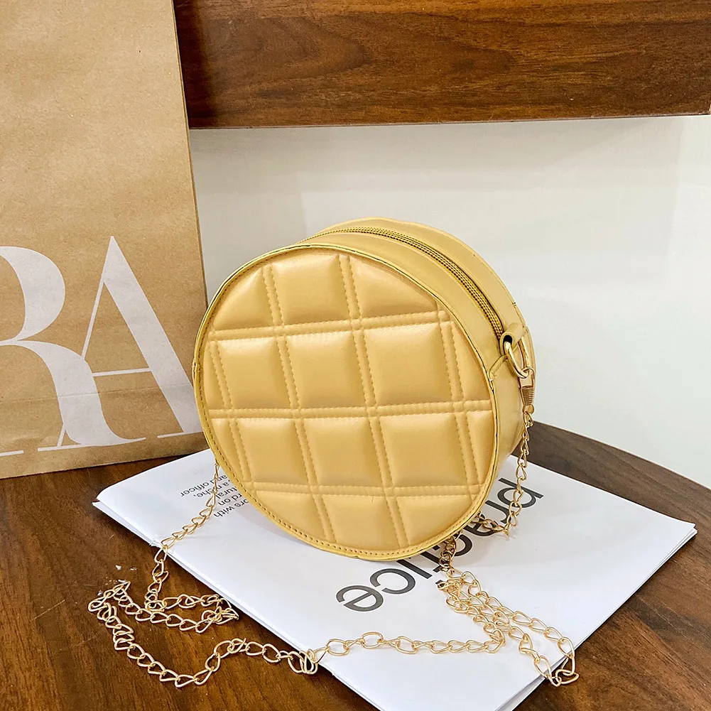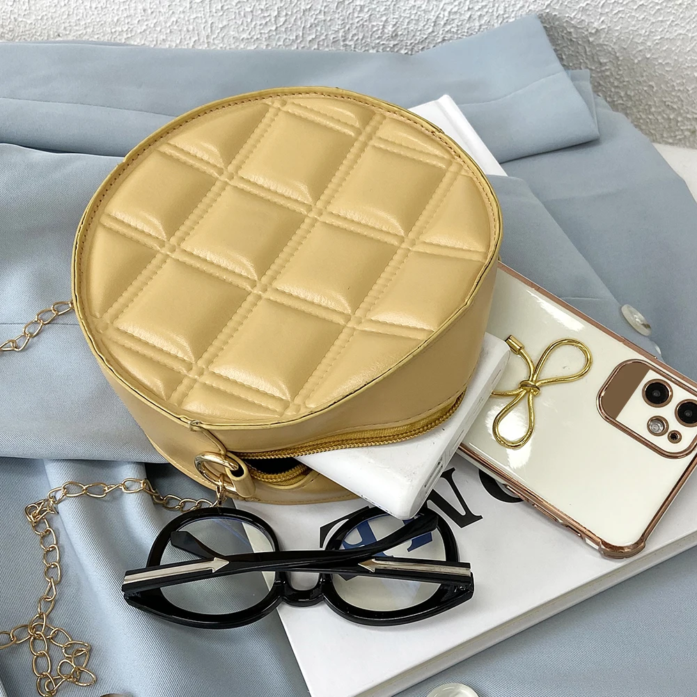 Moda feminina xadrez de couro do plutônio forma redonda corrente ombro crossbody messenger bag casual senhoras mini bolsa bolsas