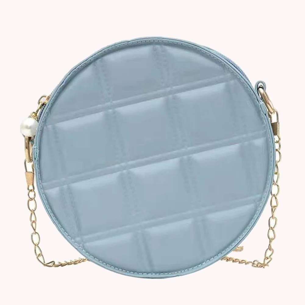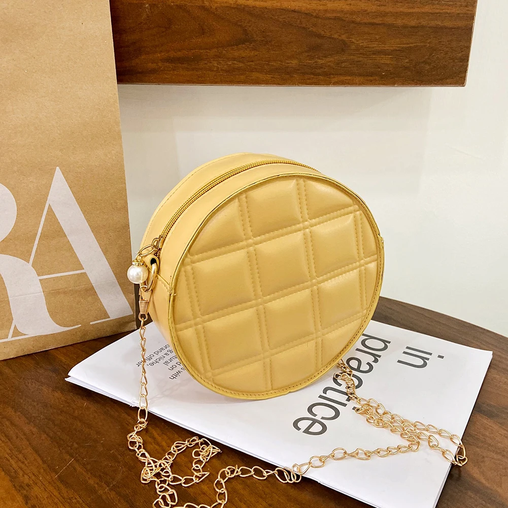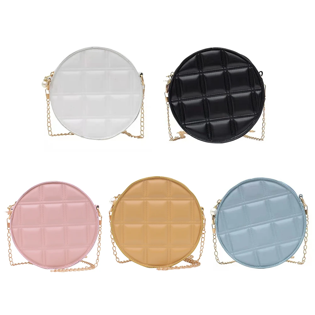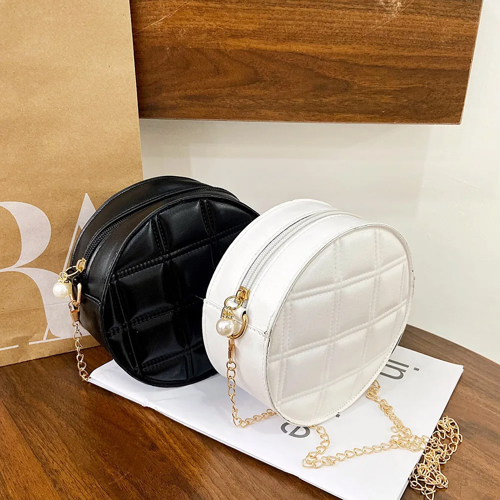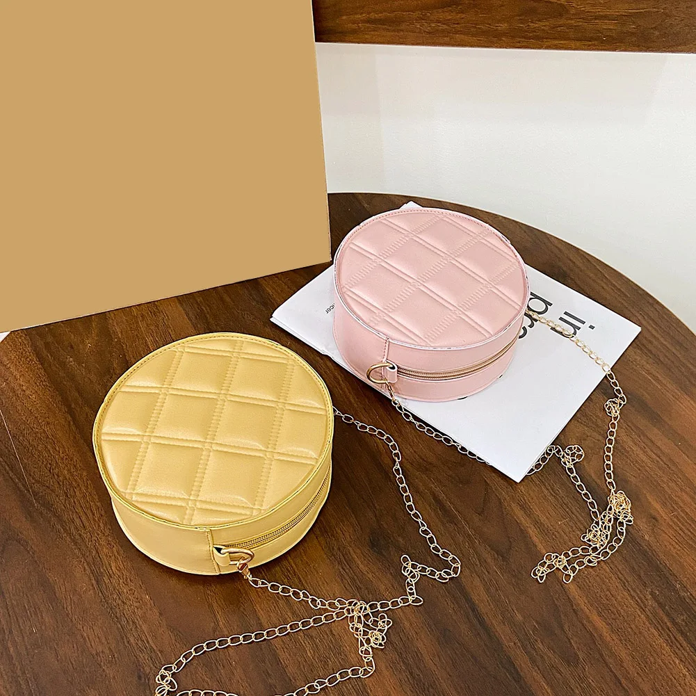 Moda feminina xadrez de couro do plutônio forma redonda corrente ombro crossbody messenger bag casual senhoras mini bolsa bolsas