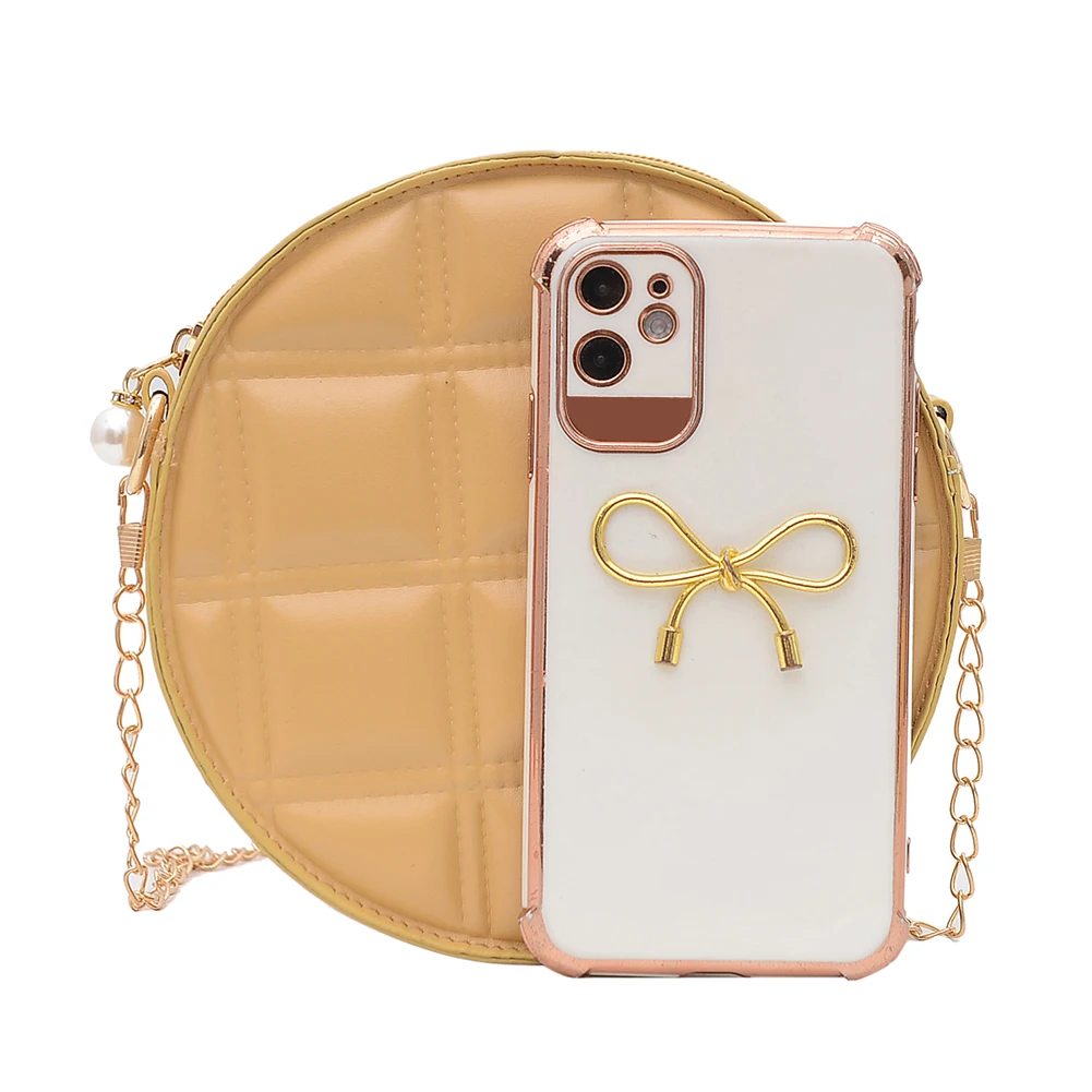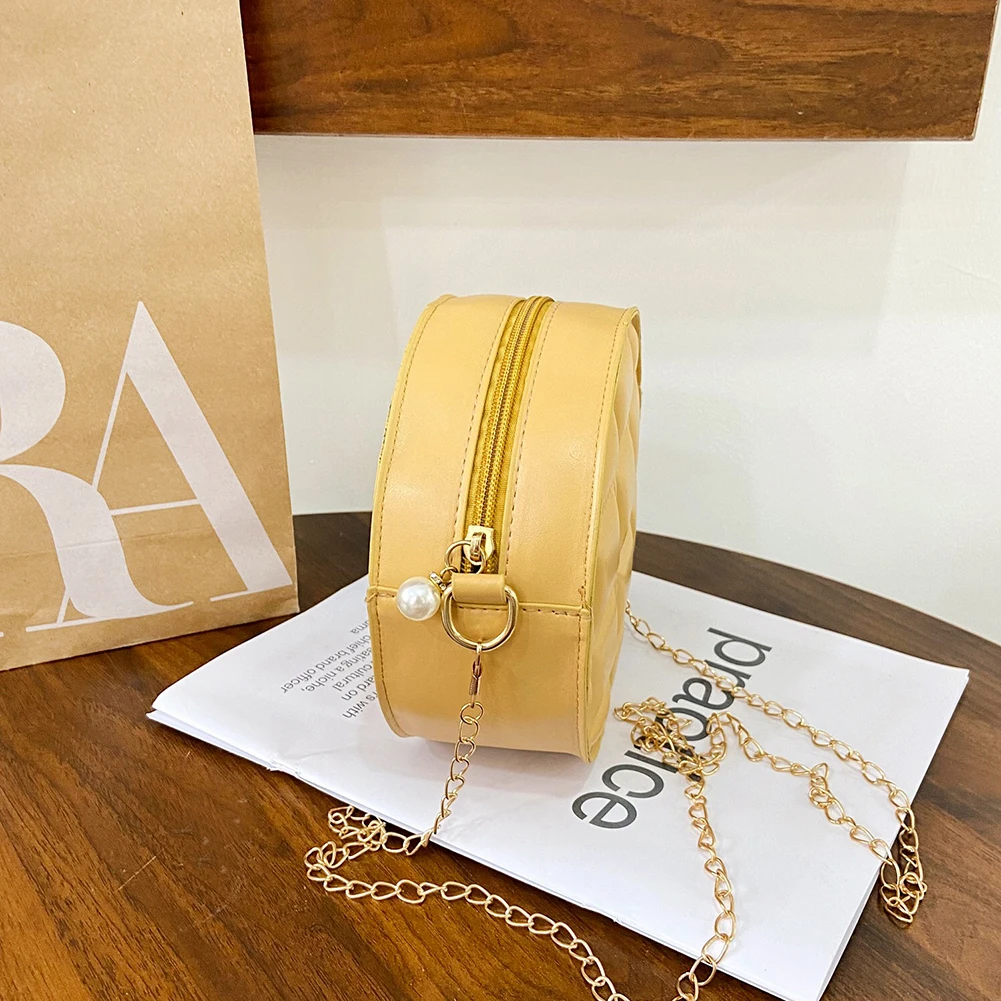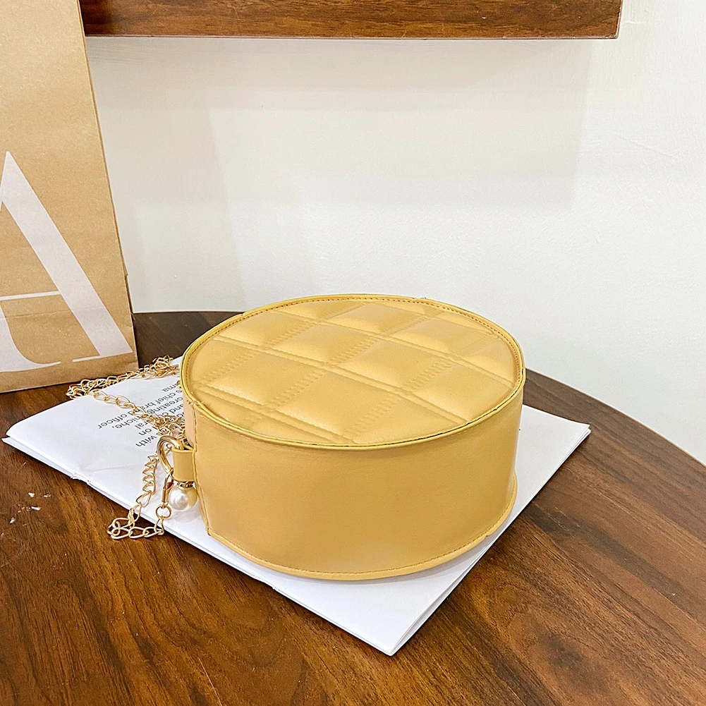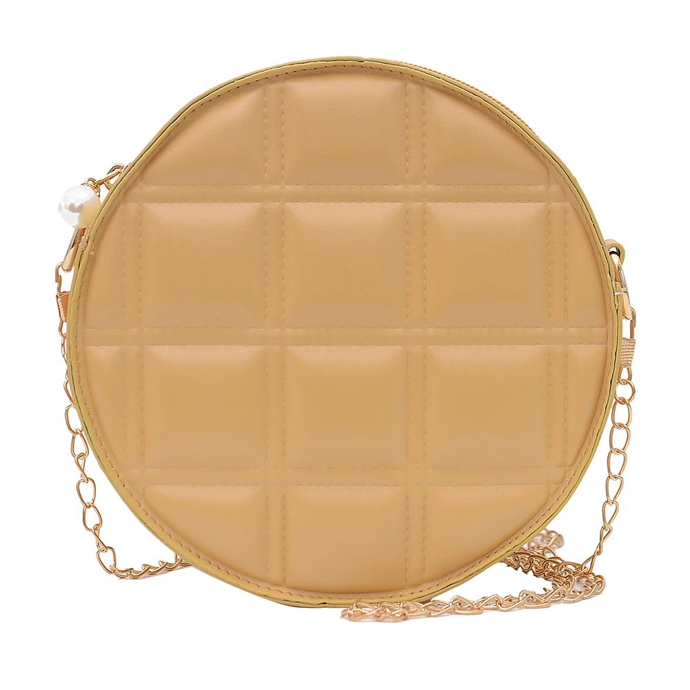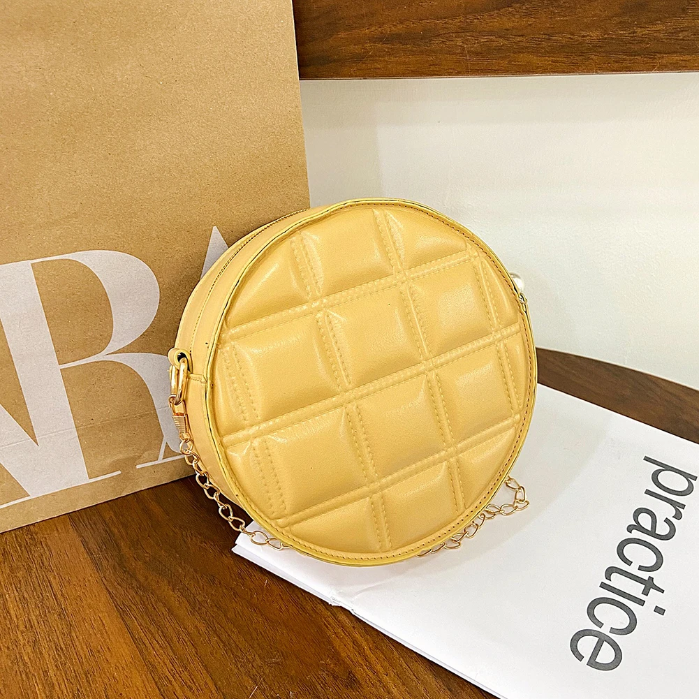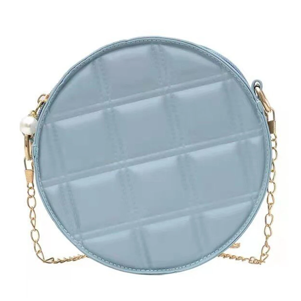 Moda feminina xadrez de couro do plutônio forma redonda corrente ombro crossbody messenger bag casual senhoras mini bolsa bolsas