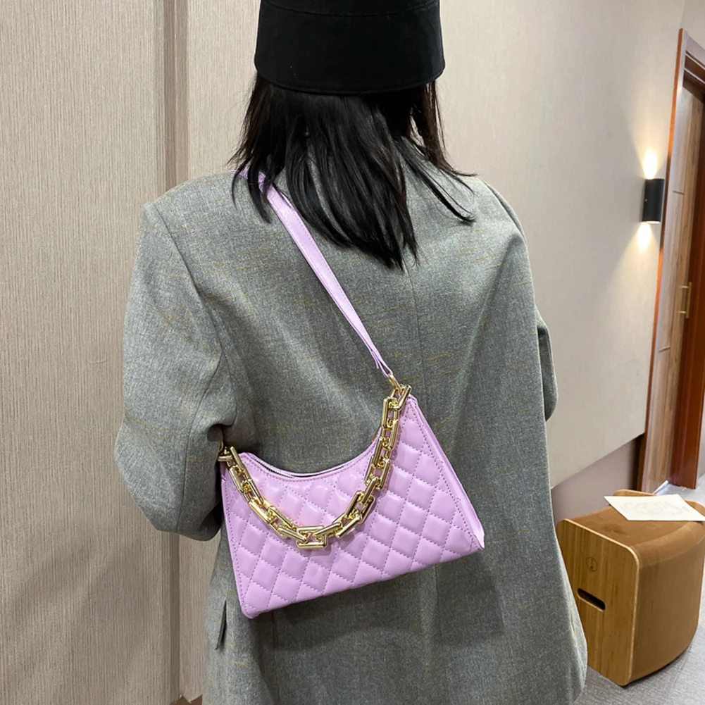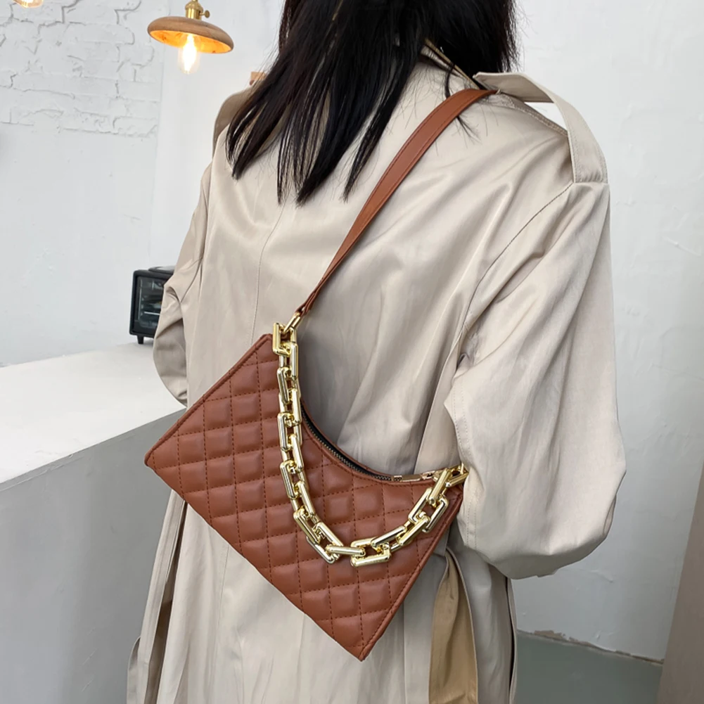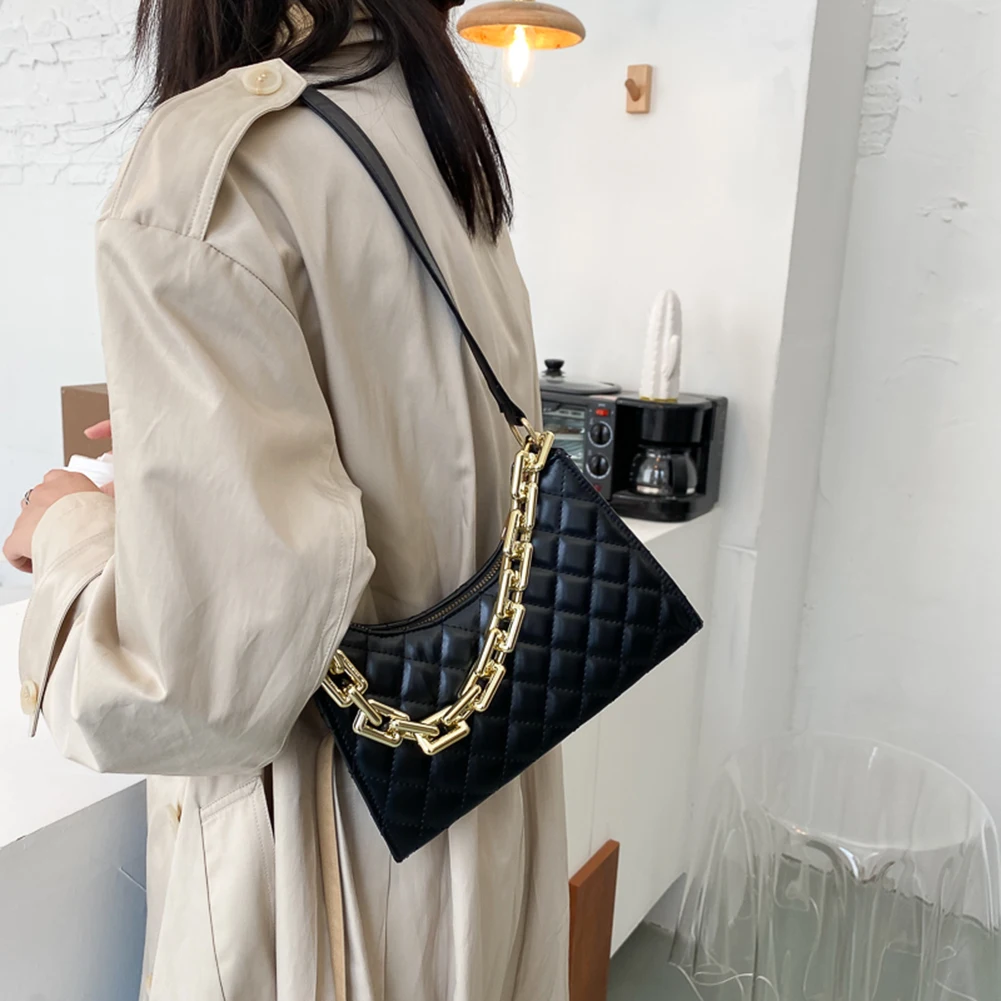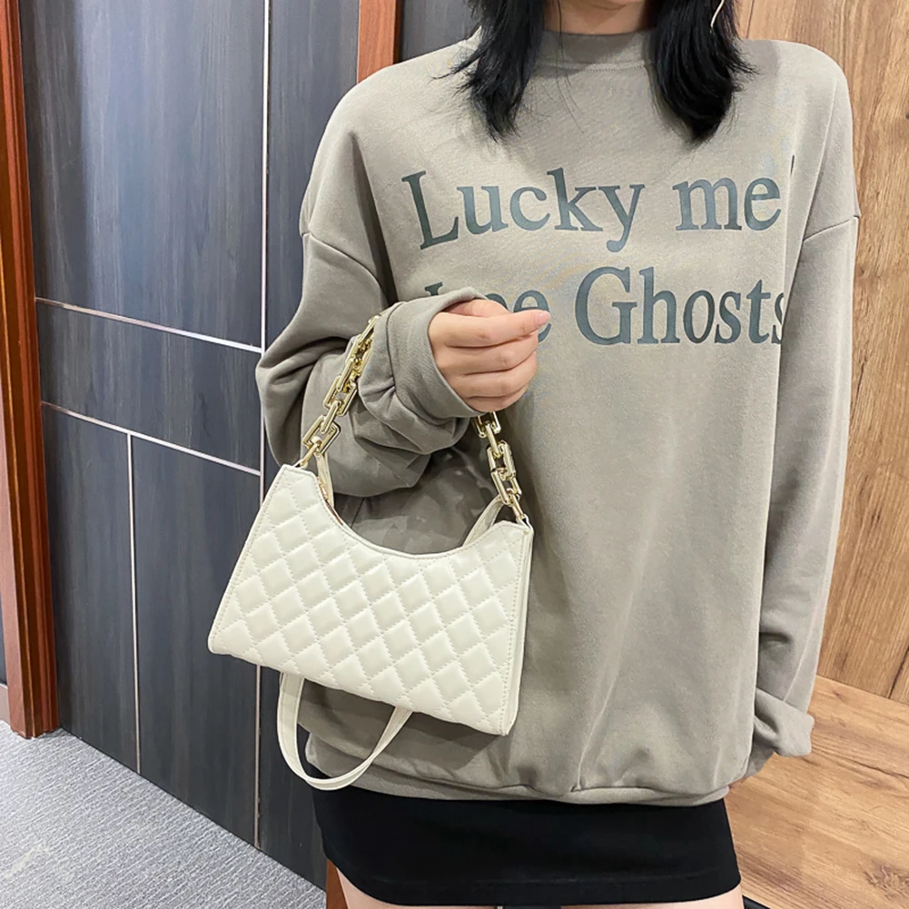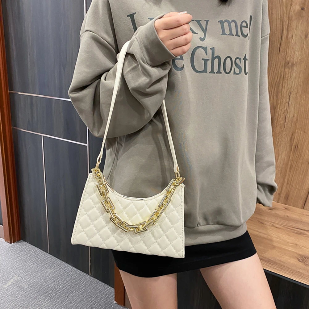 Fashion Lattice Pattern Women PU Shoulder Bag Casual Portable Female Chain Totes Leather Travel Underarm Shopping Pouch