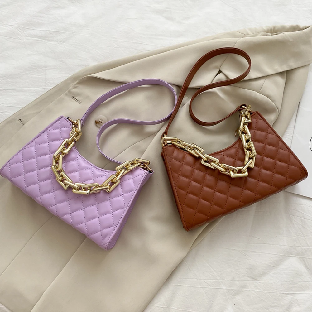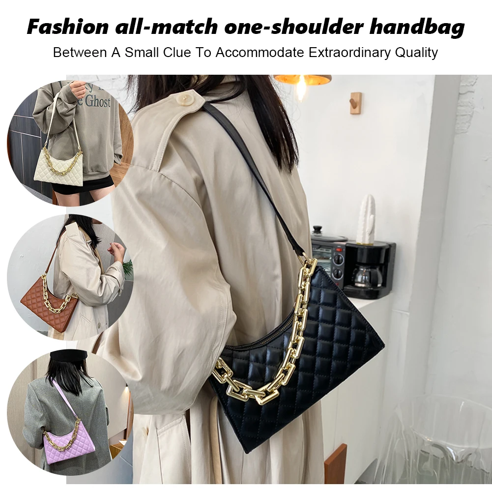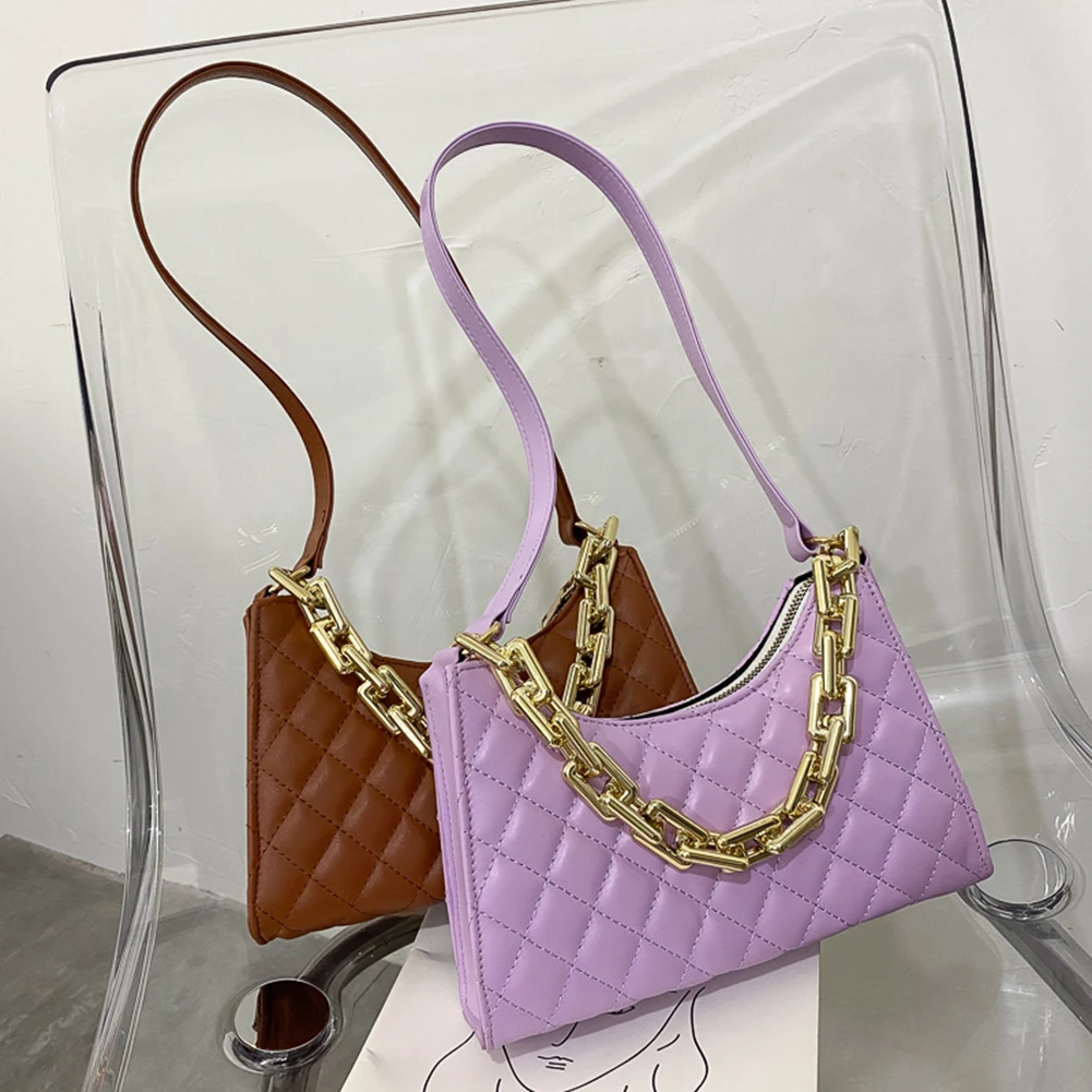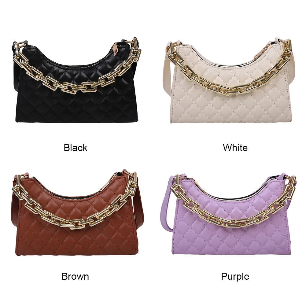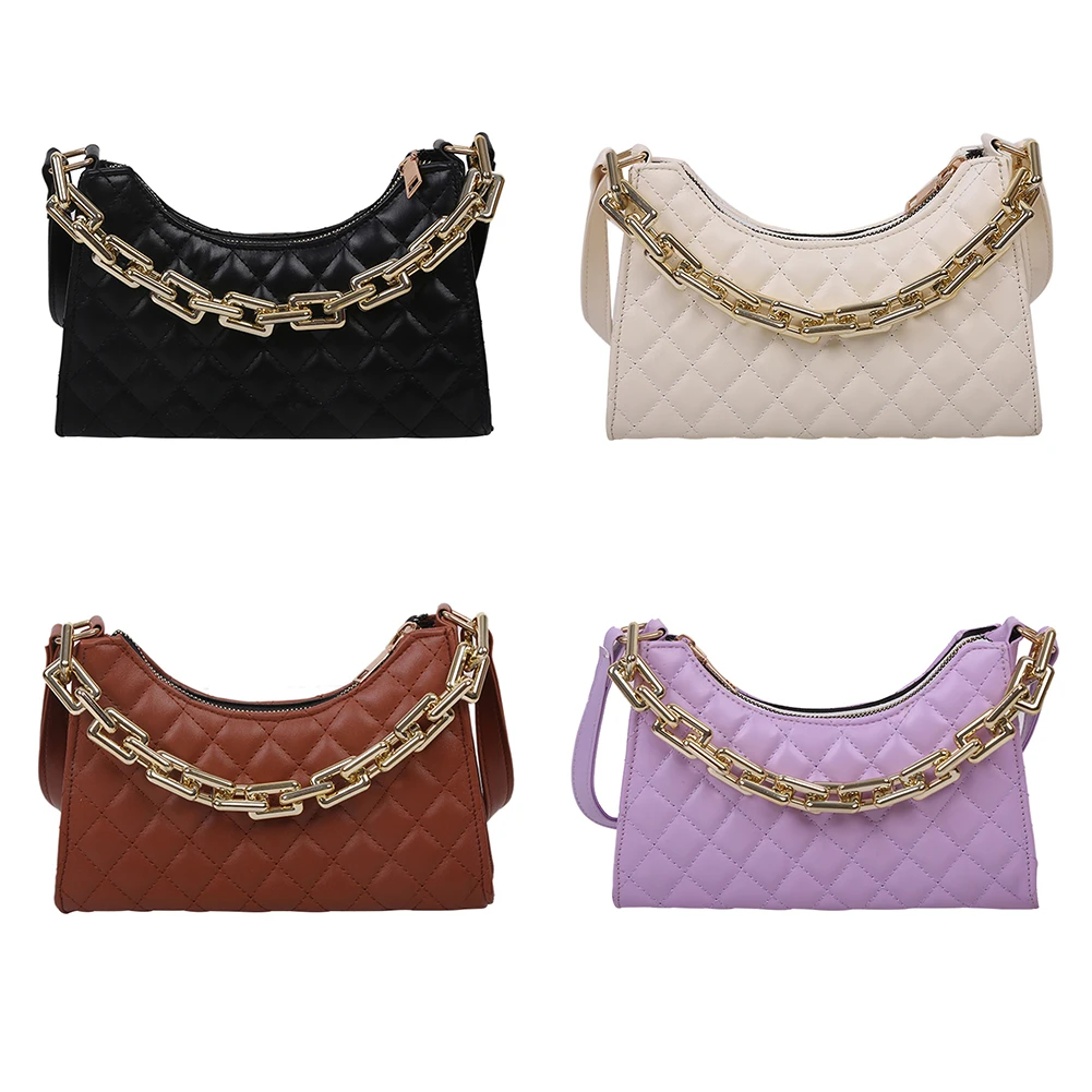 Fashion Lattice Pattern Women PU Shoulder Bag Casual Portable Female Chain Totes Leather Travel Underarm Shopping Pouch