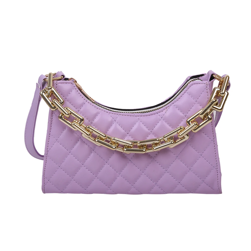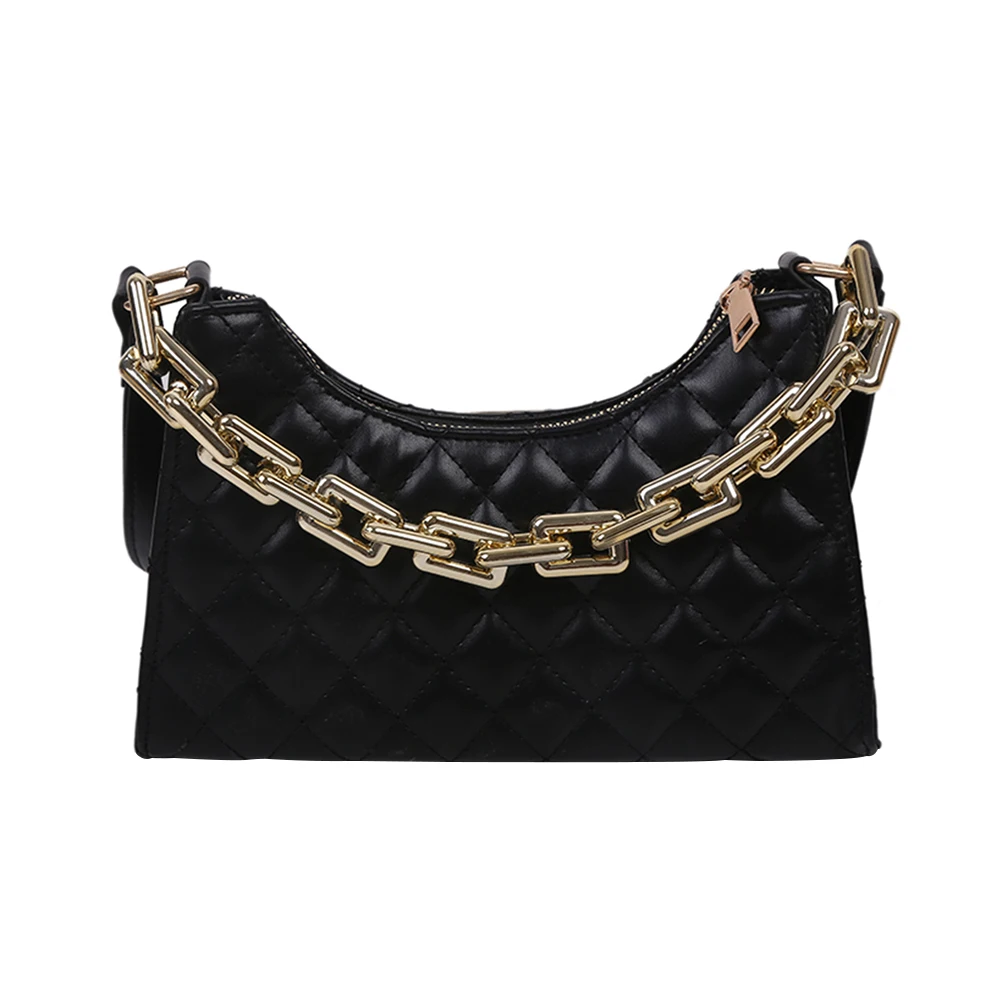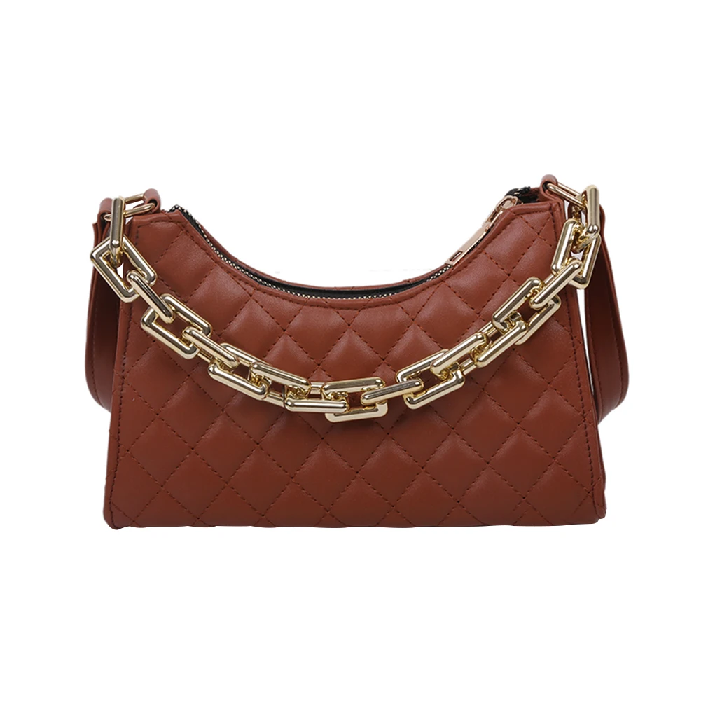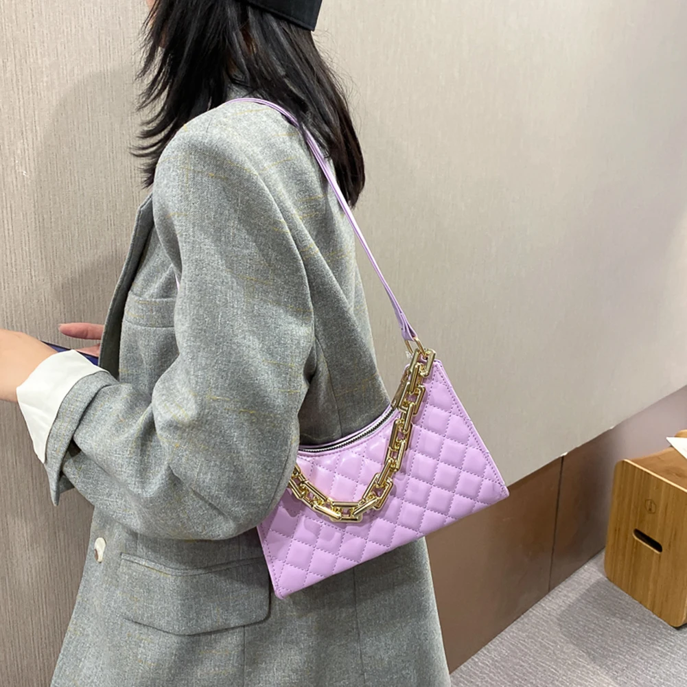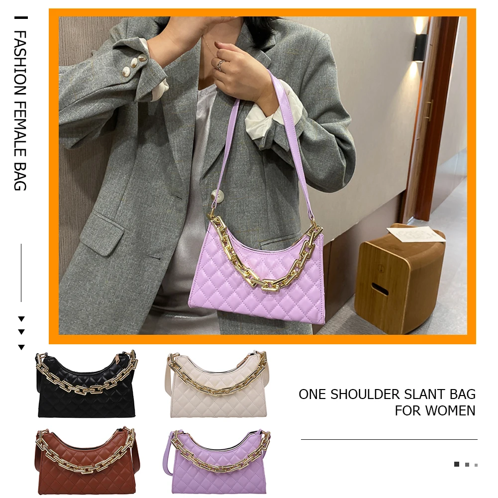 Fashion Lattice Pattern Women PU Shoulder Bag Casual Portable Female Chain Totes Leather Travel Underarm Shopping Pouch